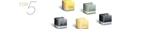 Quick answers Our top 5 PVD tribological coatings, Titanium Nitride (TiN), Diamond-Like Carbon (DLC), Chromium Nitride (CrN), Zirconium OxyC...